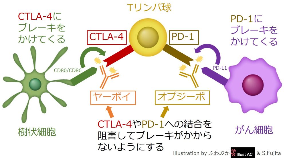 Tリンパ球のブレーキであるCTLA-4とPD-1をブロックするヤーボイとオプジーボ